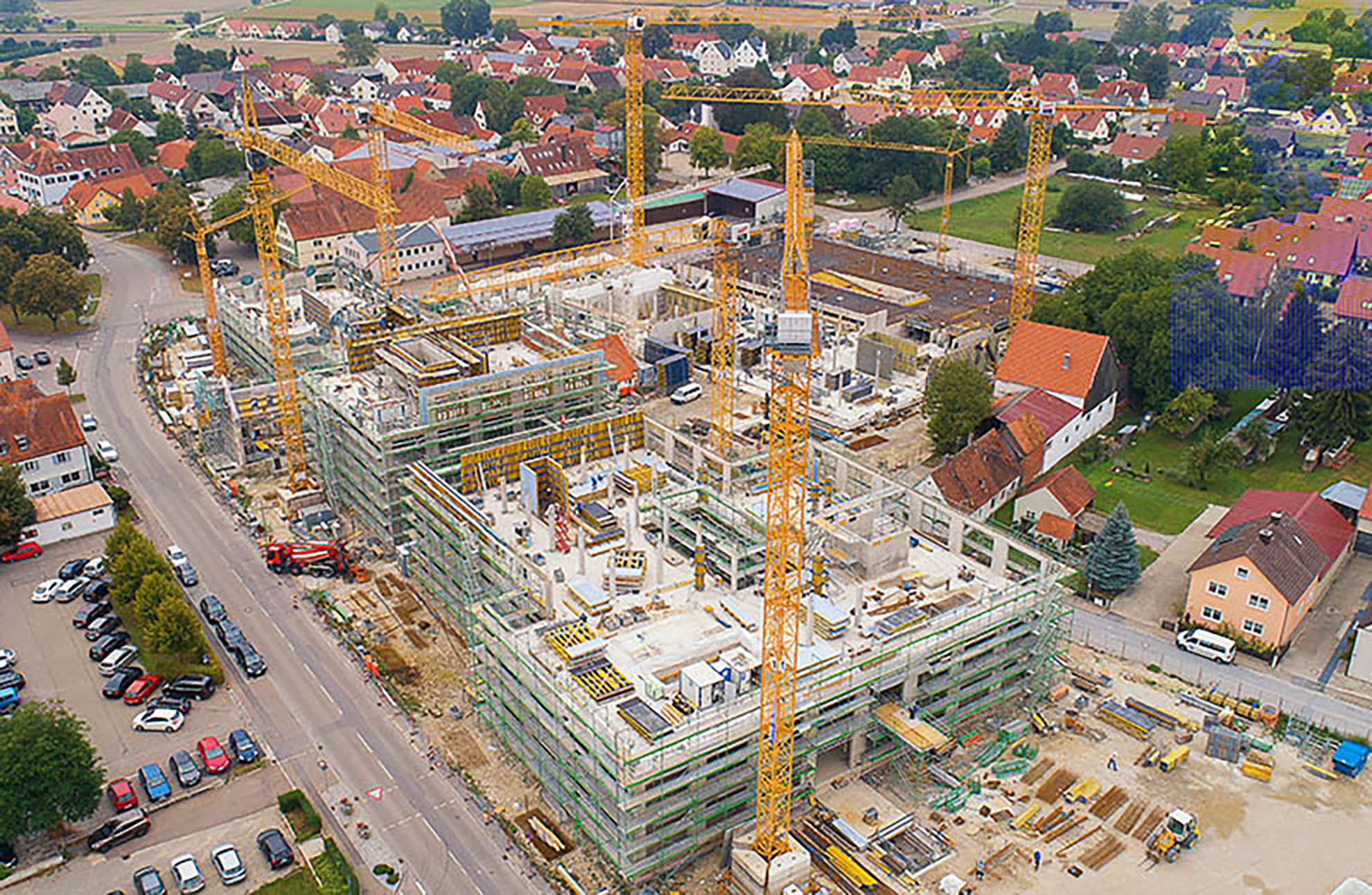 Neubau der Unternehmenszentrale der Zott SE & Co. KG mit Verwaltungsgebäude und Parkhaus.