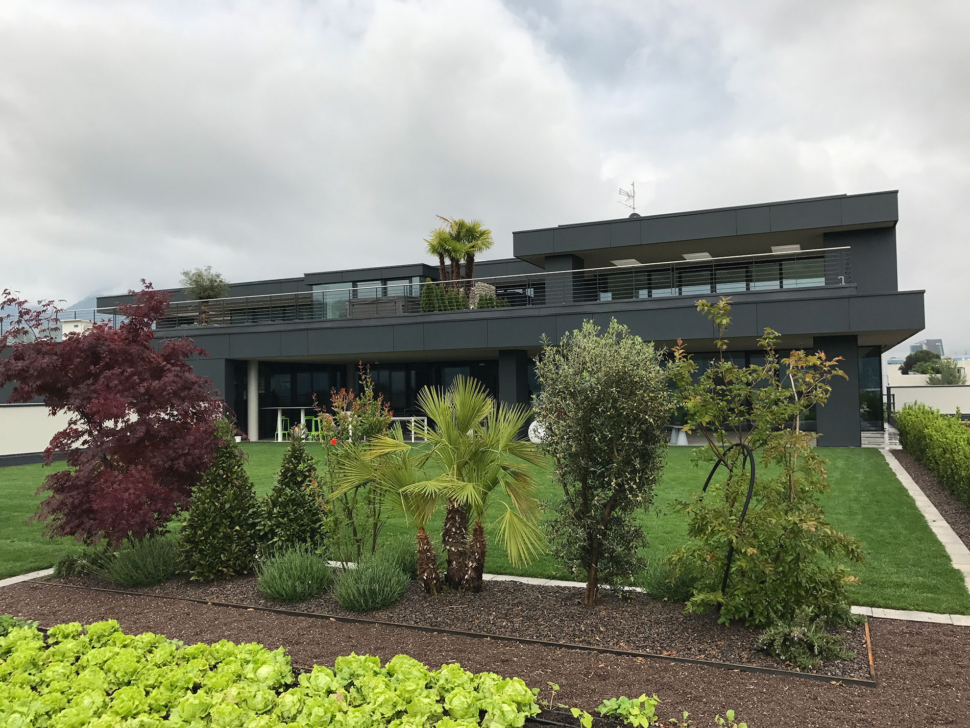 Die Warmwasserbereitung erfolgt über das Frischwassermodul, das die Wasserqualität und den Schutz vor Legionellen garantiert. Auf dem Dach wurde eine Photovoltaikanlage installiert. Weiters wurde ein Druckluftsystem und ein Bewässerungssystem für Grünflächen vorgesehen.