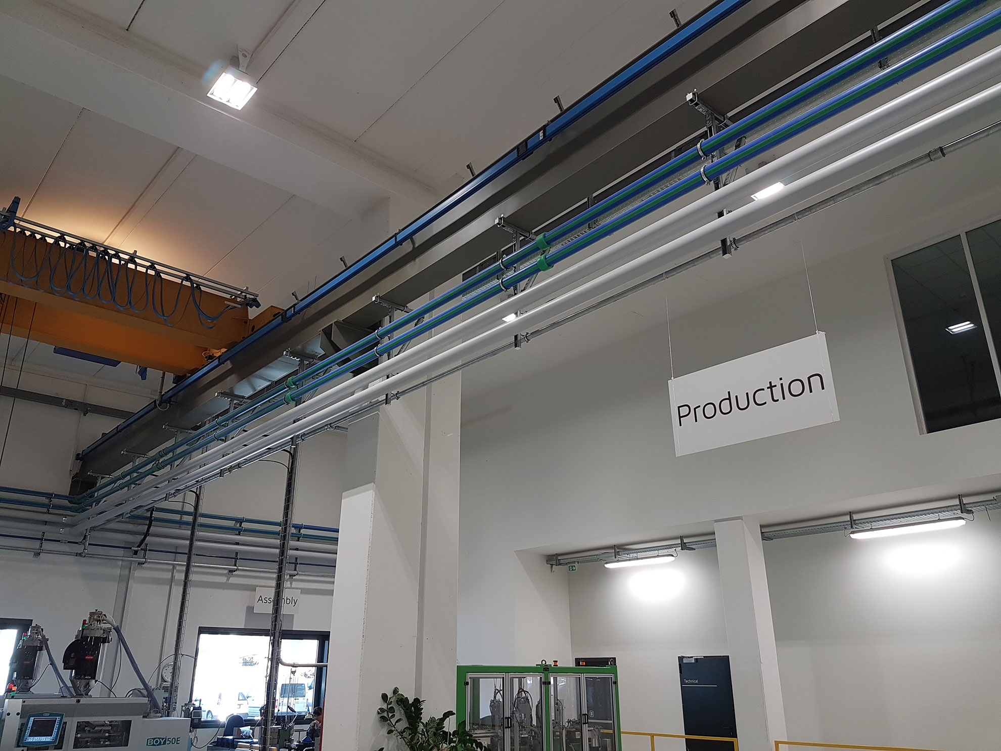 Auch die Produktionswerkstätten werden beheizt und gekühlt, um einen sehr hohen Komfort in der Arbeitsumgebung zu garantieren und um die Präzision der Produktionsmaschinen zu gewährleisten.